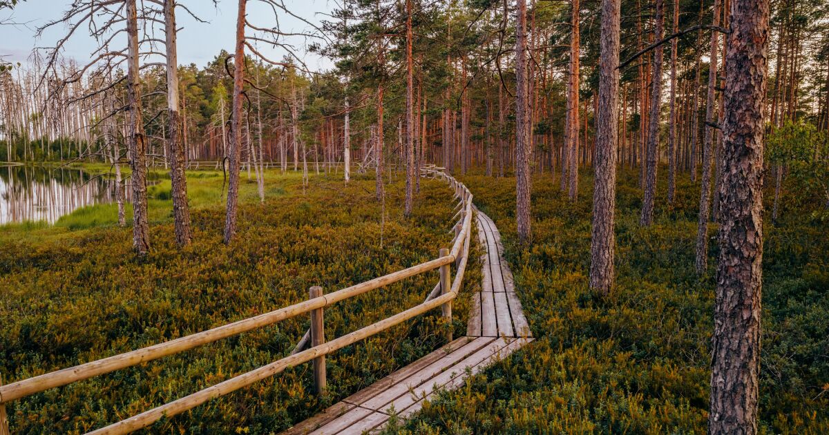 Aklā purva dabas taka. Takas sākums atrodas pie autostāvvietas mežā