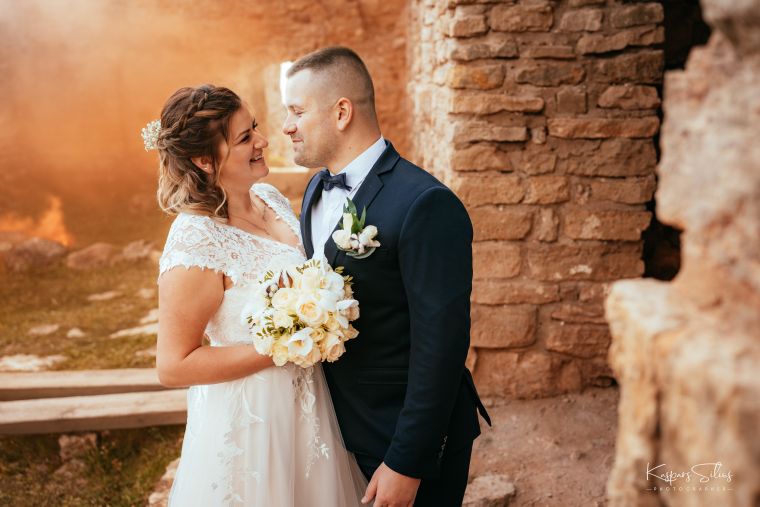 Elīnas un Rūdolfa īpašā kāzu dienas fotosesija Kokneses pilsdrupās