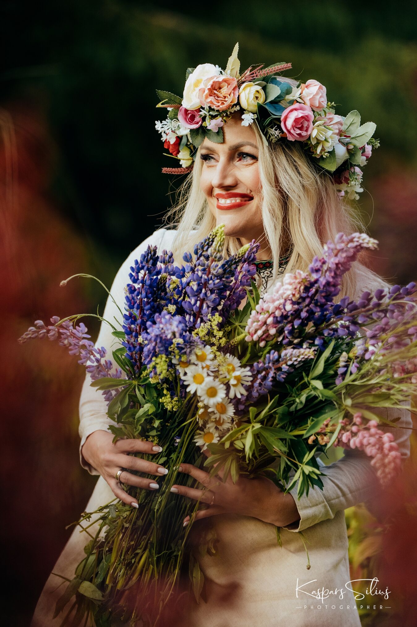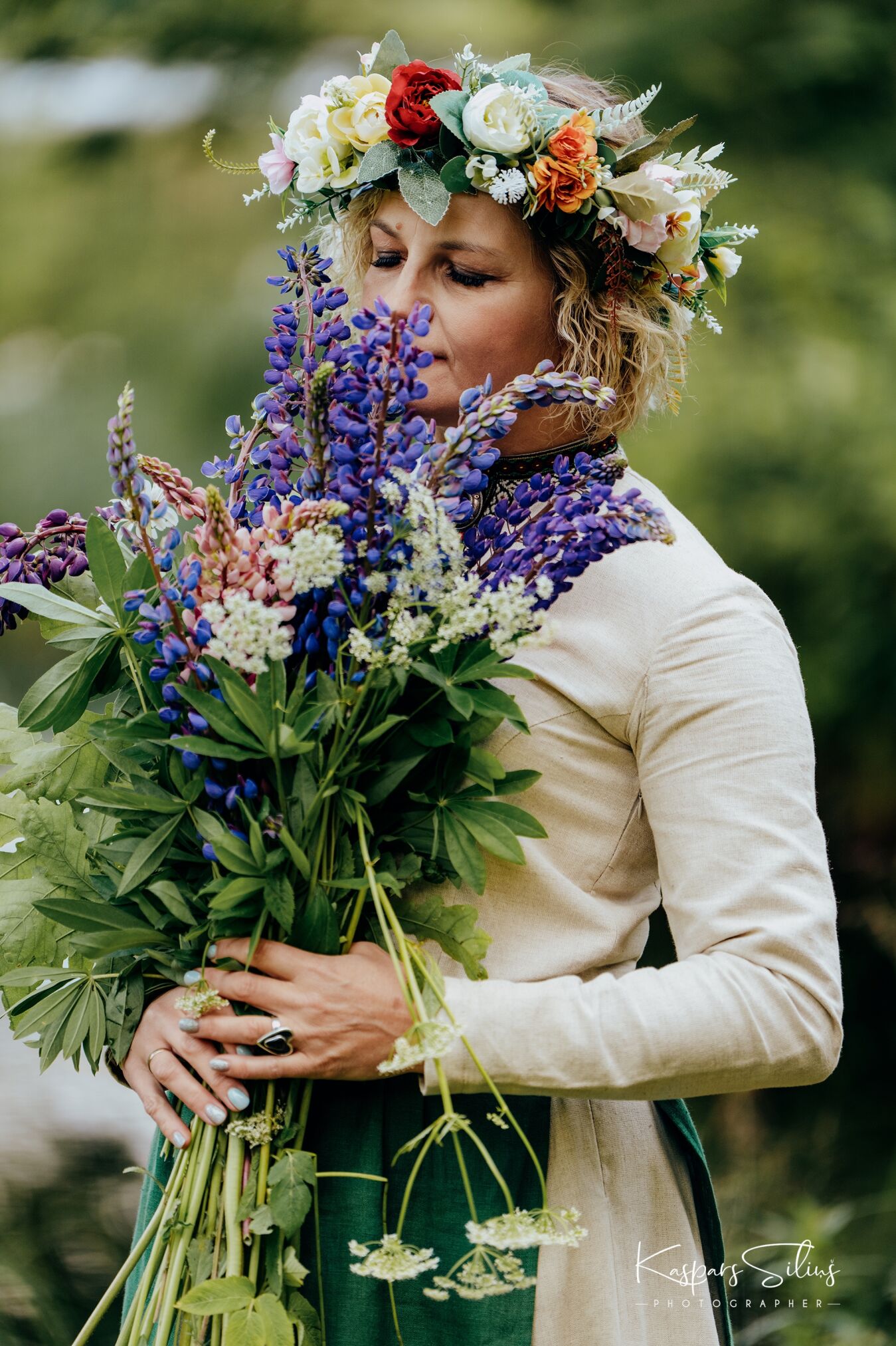 Saplūc raibus puķu pušķus,
